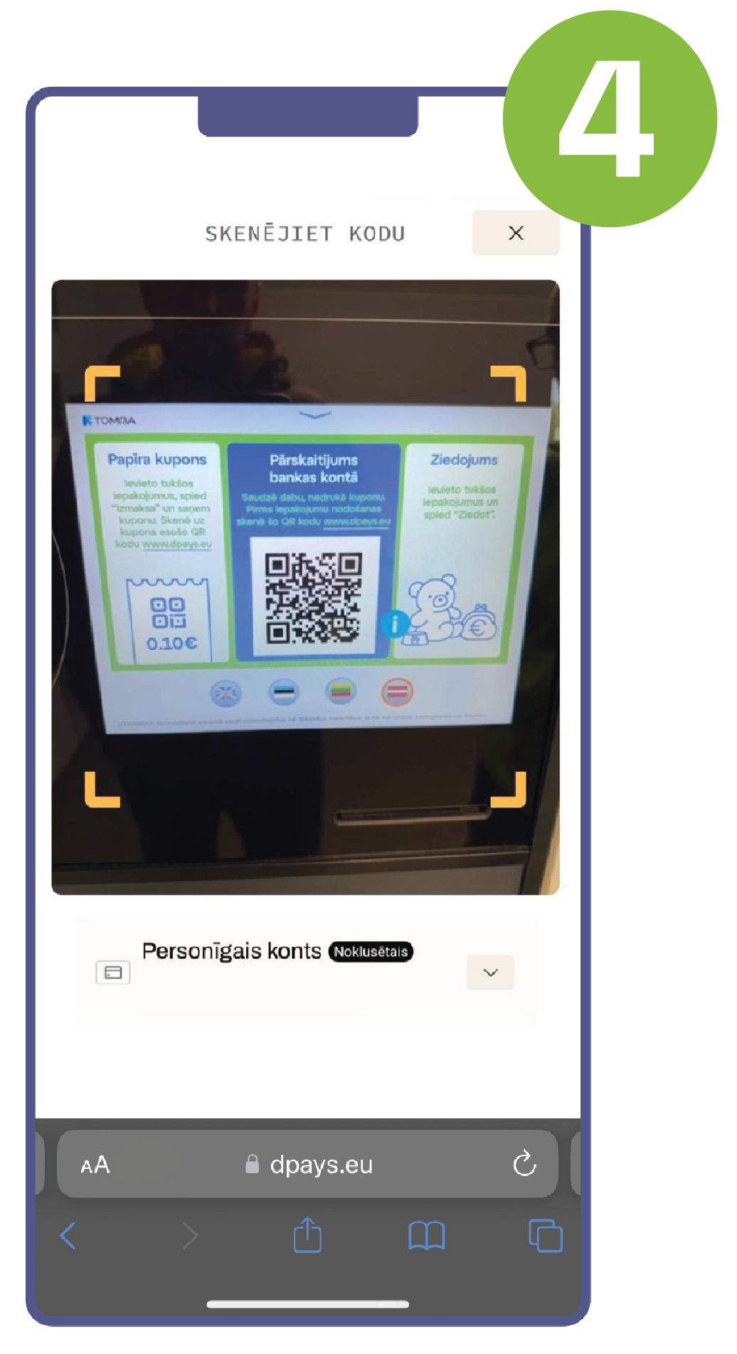 and barcode. There will be two types of depositing points in Latvia: automatic, where the packaging is accepted by the vending machines, and manual, where the packaging is accepted by a shop employee.